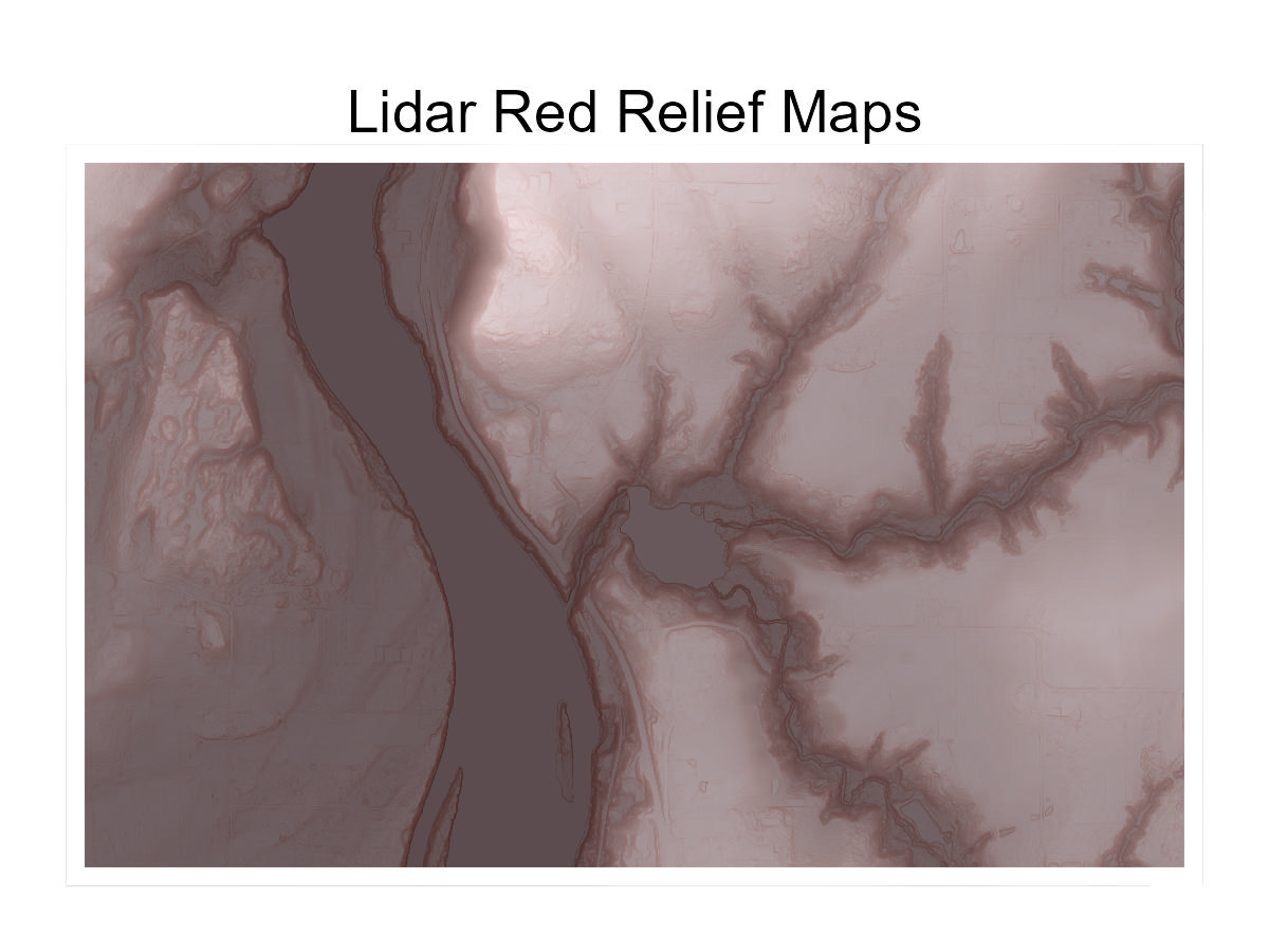 Red Relief Map: This is a special type of map that highlights both the slope and the elevation on fine-scale elevation data. It makes elevation data easier to see and understand, especially for non-specialists.