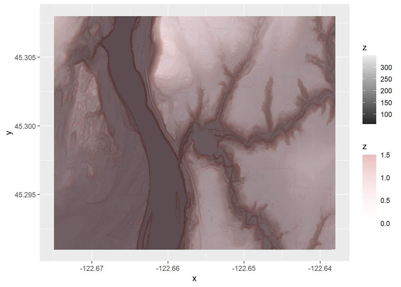 And of course, this is where you turn off annoying lat/lon coordinates and legend items using theme_void(). Why? Because red relief maps are about vibes, not about specific reconstructions that require you to know what slope percentage exactly you’re looking at.